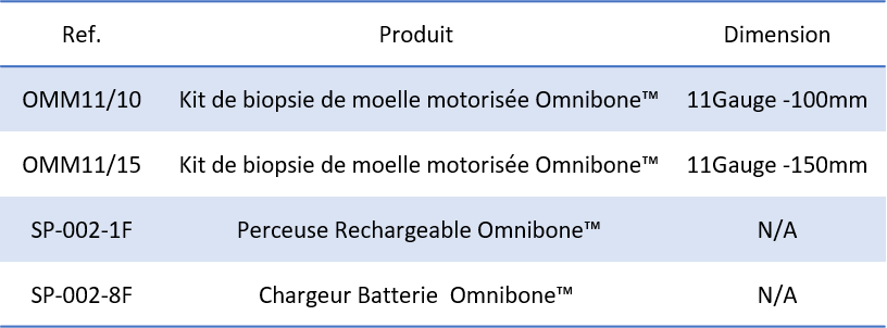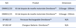 Ce kit est destiné à la biopsie de moelle. La biopsie est exclusivement motorisée et est réalisée à l’aide d’une visseuse electrique.